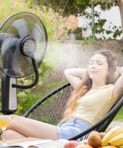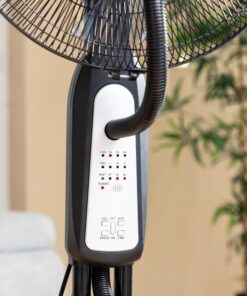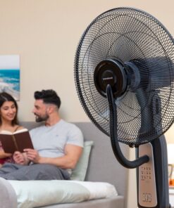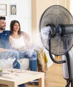 Вентилатор на стойка с дистанционно InnovaGoods. Този вентилатор на пиедестал е идеалният вариант за охлаждане през деня и нощта. Неговият резервоар от 2,8 L помага в борбата с високите температури. Има 3 скорости и 3 режима на работа, таймер, база с колела и дистанционно управление. Небулизатор: Функцията за овлажняване произвежда нежно и приятно пръскане. Комбинираното използване на вентилатор и овлажнител е идеално при сух климат, тъй като влагата прониква във въздуха и се бори с високите температури. Разполага с LED индикатор, който свети в червено, когато в резервоара няма останала вода. Разгледайте още продукти в категорията “Вентилатори за стая” – ТУК!