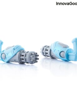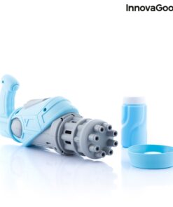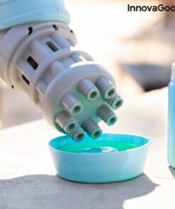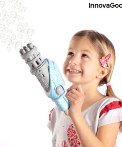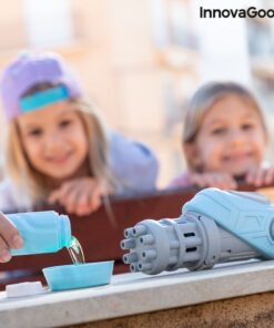 Воден пистолет за балончета InnovaGoods. Забавен пистолет за балончета, използващ сапун, за да забавлява децата, когато играят навън, като пуска множество мехурчета около тях, създавайки фантастична и магическа атмосфера. Това е игра, оцеляла през поколенията и която никога не излиза от мода. Идеален за забавление на партита и тържества, както за деца, така и за възрастните, които ще си спомнят носталгично детството си и няма да могат да устоят да не го направят. Този оригинален пистолет създава сапунени мехурчета автоматично и неговите 8 оръдия могат да изстрелят до 300 мехурчета с всеки изстрел, създавайки пълна инвазия на мехурчета. Включва кутия за сапуна и резервоар за зареждане на сапуна, което ви позволява лесно да пренасяте всичко необходимо до всяко място, където искате да го използвате. Има ергономична дръжка, работи с батерии и е много лесна за използване. Просто изсипвате сапуна, съдържащ се в кутията, в резервоара, вкарвате края на пистолета в резервоара, за да намокрите оръдията, и натискате бутона за стреляне, като повтаряте операцията, както е необходимо. Този комплект не включва сапун, но включва инструкции как да направите сапун за мехурчета. Могат да се използват специфични сапуни за мехурчета (не са включени) или можете да направите сапуна сами, като следвате приложените инструкции.