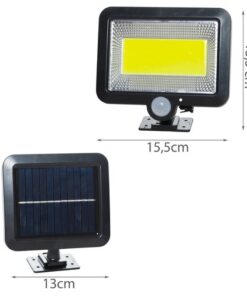 Водоустойчива соларна градинска лампа. Лампата е водоустойчива, поради което неблагоприятните атмосферни условия не влияят на нейната функционалност. Има водоустойчивост IP65 – защита срещу водна струя с интензитет 12,5 л/мин, излята от всяка страна. Лампата има сензор за движение, който включва осветлението, когато се засече активност в рамките на работния обхват на детектора. Докато сензорът за здрач реагира на промяната в осветлението и в случай на недостатъчна светлина, той активира лампата. Соларният панел и акумулаторната батерия осигуряват захранване, което позволява използването на уреда без поддръжка. Не изисква допълнителен източник на енергия, той е икономичен и икономичен. Можем да монтираме лампата с помощта на щифтовете, включени в комплекта, по лесен и бърз начин, според индивидуалните нужди на обекта и терена (напр. стена, ограда, греда). Разгледайте още продукти в категорията “Соларни лампи” – ТУК!