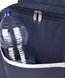 Водоустойчива термочанта за пикник и плаж. Чантата за пикник запазва температурата на храната и напитките, затова е много добра, ще бъде перфектна по време на пътувания, пътуване до морето, в планината или по време на пикник, напр. в градски парк. Термочантата е водоустойчива, което я прави идеална за неблагоприятни метеорологични условия – както при валежи, така и при снеговалеж. Преносима чанта за пикник Освен това е адаптирана за транспортиране на чинии, прибори и чаши благодарение на по-малък джоб, има също джоб за бутилка за пиене и джоб отгоре с велкро за по-бързо отстраняване на напр. бутилка. Чантата за пикник е изработена от PEVA материал, който е устойчив на UV радиация и замръзване. Разгледайте още от категорията “Къмпинг оборудване” ТУК!