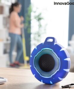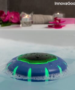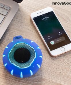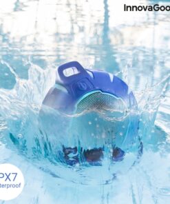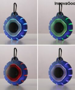 Водоустойчива bluetooth колонка InnovaGoods с многоцветни LED светлини, които мигат в ритъма на музиката. Неговият безжичен, ултралек и преносим дизайн го прави много лесен за носене навсякъде, за да слушате музика без кабели или щепсели. Освен това ви позволява да извършвате и получавате повиквания, тъй като има вграден микрофон и функция за свободни ръце. Освен това плува и е водоустойчив (IPX7), така че може да се използва удобно във вода (душ, вана, плаж, плувен басейн и др.).