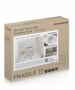 Въртяща се табуретка за баня InnovaGoods. Тази нехлъзгаща се табуретка за баня с въртяща се седалка и регулируема височина е идеална за подпомагане на възрастни хора или хора с трудности да се мият. Улеснява влизането или излизането от душа или ваната, с повишен комфорт и безопасност. Този въртящ се и регулируем стол за душ е ергономичен и много здрав. Изработена е от качествени материали, има 8 позиции на височина и се сглобява лесно. Ергономичен дизайн: нашата въртяща се и регулируема табуретка за баня е чудесна помощ, когато става въпрос за задачи като измиване, осигуряване на опора, безопасност и комфорт. Благодарение на своя модерен и елегантен дизайн, той е идеален за всяка баня. Може да се постави под душа, ваната или във всяка част на банята. Идеален за възрастни хора, хора с наранявания, затруднено изправяне, намалена подвижност и др. Въртяща се седалка: тази регулируема табуретка за баня има въртяща се на 360º седалка. Неговата иновативна система за въртене улеснява влизането и излизането под душа, намалявайки физическите усилия на потребителя и неговия грижещ се по време на лична грижа. Регулируема височина: нашата въртяща се табуретка за баня предлага 8 нива на височина, за да се адаптира по-добре към предпочитанията и нуждите на потребителя. Неговите 8 позиции могат да се фиксират лесно с помощта на щракване. Височината варира между 36 и 53 cm приблизително. Неплъзгащ се, безопасен и стабилен: този регулируем стол за душ осигурява максимално задържане, стабилност и безопасност. Има неплъзгащи се капачки, които генерират вакуум, за да гарантират здраво захващане. Материалите му са устойчиви, некорозионни и висококачествени (алуминий, ABS и HDPE). Издържа до 130 кг. Лесен за сглобяване и почистване: тази въртяща се табуретка за баня се сглобява и разглобява лесно, без да са необходими инструменти. Включва ръководство за сглобяване, аксесоари и инструкции с илюстрации. Може да се почиства лесно с влажна кърпа.