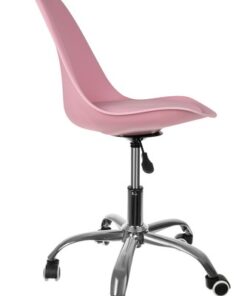 Въртящ се офис стол в розов цвят стилен дизайн перфектен за работа в офиса и в дома с удобна облегалка. Седалката е изработена изцяло от полипропилен. Възглавницата, от друга страна, е изработена от синтетична кожа – мека и удобна дори когато седите продължително време. Газовото окачване дава възможност за непрекъснато регулиране на височината на седалката според вашите нужди. Сглобяването е лесно, отнема около 5 минути и не изисква никакви допълнителни инструменти – всичко е включено. Столът е оформен така, че да се наслаждавате на максимален комфорт. Гумени колела предпазвът пода от надраскване и килимът остава непокътнат. Колелата на офис стола са тихи при преместване. Този уникален въртящ се стол може да бъде адаптиран към вашите индивидуални нужди благодарение на функцията за регулиране на височината. Всичко, което трябва да направите, е да натиснете или дръпнете нагоре малкия лост под седалката, за да поставите удобната позиция. Монтажът на въртящия се стол е изключително лесен и отнема само няколко минути. Всички необходими части с ясни инструкции са включени в комплекта. Не се нуждаете от допълнителни инструменти за сглобяване. Подходящ и за подарък – погрижете се за удобството на любимия си човек. Този стол има интересен и атрактивен външен вид. Създаден е в универсален стил. Внимателната изработка и естетическото покритие с внимание към детайла несъмнено му придават естетическа стойност. Столът е с широка седалка, която е снабдена с възглавница от екологична кожа, която ще гарантира свобода и комфорт при ползване. Благодарение на използването на еко кожа, столът се почиства лесно, може да използвате обикновена мокра кърпичка.