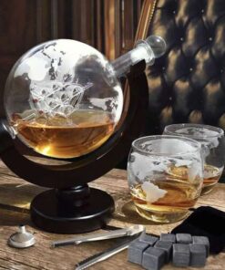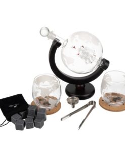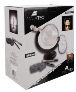 Гарафа глобус Комплект с чаши Malatec 22553. ГОЛЯМ КОМПЛЕКТ – целият комплект включва гарафа във формата на глобус, 2 чаши с шарка, 2 коркови подложки с карта; 9 каменни охлаждащи кубчета и щипки за хигиенично поставяне на кубчетата в чашата. Това е комплект, който ще зарадва всеки любител и пътешественик на уискито. GLOBUS EFFECT – Комплектът глобус за уиски ще бъде перфектно допълнение към декора на вашата всекидневна. Той е елегантен и изискан. Тази глобус гарафа за уиски изглежда страхотно както пълна, така и празна. ДЪРВЕНА НА ОСНОВА – Дървената стойка във формата на полумесец също допринася за неговия чар. Така че там е не само функционална, но и елегантна декорация. ВЪТРЕШНИ КАРАФИ – вътре в гарафата има кораб, който изглежда красив потопен в напитката! Този ефект изглежда невероятно, когато бавно изпразните гарафата, корабът изплува на повърхността. Гарафа за уиски с чаши е перфектен и вкусен подарък за всяко момче, което обича уискито и морските пътешествия. Можете да го подарите на вашия баща, дядо, приятел или съпруг. Вашият любим със сигурност ще се зарадва на този необичаен подарък. Разгледайте още продукти в категорията “Дървени играчи за готвене” – ТУК!