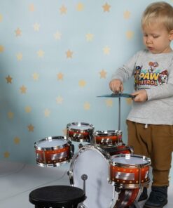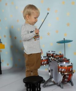 Голям комплект детски барабани XL Kruzzel 22464. РАЗВИТИЕ НА РИТМИЧНИ УМЕНИЯ – играчката барабан спомага за развитието на ритмичните умения на децата. Свиренето на ударни инструменти изисква поддържане на темпото, координиране на движенията и развиване на чувство за ритъм. 5 БАРАБАНА – комплектът се състои от голям бас барабан, управляван от крачен педал, два средни барабана и два малки барабана. РАЗВИВАНЕ НА СПОСОБНОСТИ – свиренето на ударни инструменти включва ръце и пръсти, което спомага за развитието на ръчни умения и прецизност на движенията. Това може да бъде особено полезно за по-малки деца, които се учат да контролират движенията си. СТОЛ – комплектът включва столче за малък барабанист. Благодарение на това детето седи удобно по време на игра и може да използва това столче и за игра.