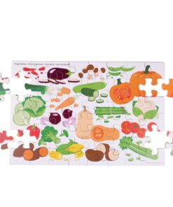 Голям пъзел Зеленчуци – дървен пъзел Bigjigs.Този цветен голям пъзел от 48 части е създаден, за да очарова и образова малчуганите. Въображението на малките деца е пленено, докато гледат как картината на техния дървен пъзел се разгръща постепенно. Сглобете частите на пъзела, за да създадете красива 360-градусова сцена. Огромният размер на подовия пъзел го прави идеален за групова игра – приятелите и семейството могат да се присъединят. Ще видите голямо разнообразие от различни зеленчуци, докато изграждате пъзела парче по парче. Забавен и интересен начин да научите децата на здравословно хранене и здравословен начин на живот, докато научават за различните видове плодове. Пъзелът помага за развиване на умения за решаване на проблеми и сръчност. Този подов пъзел е направен от висококачествени материали с отговорни източници и отговаря на настоящите европейски стандарти за безопасност. Разгледайте още от категорията “Дървени пъзели” ТУК!