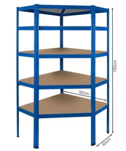 Голям ъглов рафт за тежка техника – сглобяем щендер. Максималното натоварване на един рафт е 175 кг, което заедно дава цели 875 кг – спокойно можете да поставите дори тежка техника върху него. Библиотеката е идеална за помещения като мазе, гараж, склад или магазин. Изработена е от антикорозионна поцинкована стомана и MDF плоскости с дебелина до 4 мм, освен това стелажът има напречна греда, което ще повиши стабилност и издръжливост и ще осигури дългогодишна употреба и пълно удовлетворение от продукта. Сгъването на багажника отнема само 15 минути, използването на системата за натискане на ключалката води до това, че не са необходими инструменти или винтове за сглобяване. Стелажите могат да се комбинират помежду си (могат да се сглобят като работна маса) и да се прикрепят към стените, особено ако решим да пренасяме тежък товар, струва си да обезопасите рафтовете. Вие решавате какво пространство между рафтовете ви е необходимо – отворите за фиксиране на рафтовете са разположени на всеки 3 см, това ще позволи те да бъдат поставени на различни височини. Металните крачета са с противоплъзгащи се подложки, които ще предпазят пода от надраскване, както и гарантират стабилност и безопасност при използване.
