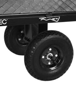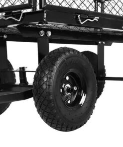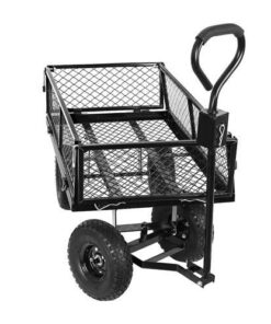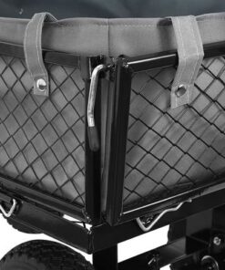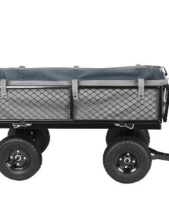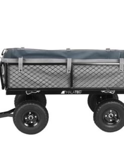 Градинска количка с колелца WO-9032 Malatec. В нашия нов модел количка се погрижихме конструкцията й да бъде усъвършенствана във всяко отношение. Заложихме на тъмни, практични и същевременно модерни цветове, затова конструкцията е изпълнена в черно. Продуктът е подсилен, благодарение на което използването му е напълно безопасно, функционално и същевременно стабилно. Справя се добре с натоварване до 350 кг. Разполага с 4 пневматични колела, които абсорбират ударите, по-лесно и гладко задвижване. Надуваемите колела ще се справят по-лесно с алея, напр. на бордюр, стълби и т.н. Налягането в гумите може да се регулира чрез намаляване или увеличаване на количеството въздух – това ще позволи голяма гъвкавост и адаптиране към земята. Джантите са изработени от поцинкована стомана, което ги прави устойчиви на корозия – ще се поддържат в перфектно състояние. Дава възможност за теглене или бутане на количка, както и закачването й към трактор или четворка. Дръжката е със сглобка, която позволява индивидуално регулиране спрямо височината на даден човек, допълнително е покрита с мека, нехлъзгаща се пяна, която позволява здрав захват. Количката ще работи както за по-възрастни хора, така и ще осигури страхотно забавление за децата. Продуктът е идеален за почистване в градината и работилницата, за транспортиране на дърва вкъщи, тежки предмети в склад. Улесняват пълненето и изпразването на количката. Отварянето или затварянето им отнема само няколко секунди. Количката има и ключалка и скоби, които след странично затваряне ще я предпазят от спонтанно отваряне. Освен това използвахме сив материал, с който ще покрием мрежестите страни. Това е чудесно решение, когато транспортираме малки или разхлабени предмети, които могат да изпаднат през мрежата. Материалът е издръжлив, устойчив на разкъсване и също така устойчив на неблагоприятни атмосферни условия. Обува се с метални закопчалки, благодарение на които ще бъде внимателно подплатено. Разгледайте още продукти в категорията “Домашни потреби” – ТУК!