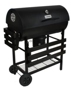 Градинска скара с капак тип варел G8057 Kaminer. Грилът се предлага с аксесоари, които ще ви позволят да приготвите страхотни ястия: шпатула, вилица и щипка. Изработена от неръждаема стомана. Имат удобни дървени дръжки и благодарение на специални ремъци можете да ги закачите навсякъде. Специална духалка ще ви помогне да запалите традиционна скара. Сега ще отнеме няколко минути. В комплекта има и две огнеупорни тефлонови подложки за грил с незалепващо покритие, благодарение на което лесно печете зеленчуци, яйца или месо, без да е необходимо да използвате мазнина. ТЕРМОМЕТЪР + КОНТАКТИ ЗА РЕГУЛИРАНЕ – те ще ви позволят да печете точно на желаната температура. Тавата за дървени въглища предпазва пещта от прегаряне и улеснява почистването на скарата. Основната поставка се използва за печене на храна, а окачената поставка запазва температурата на вече изпечената храна. В комплекта има дръжки за сваляне на решетката, благодарение на които безопасно и бързо можете да извадите цялата скара от скарата. Практичните колела улесняват преместването на скарата – просто повдигнете леко скарата и дръпнете дръжката. Разгледайте още от категорията “Барбекюта на дървени въглища” ТУК!