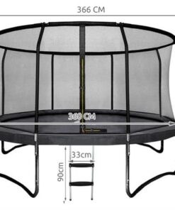 – диаметър на батута: 366 см 12 фута (измерен с пръти; постелка с покритие за пръти 360 см)