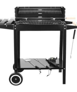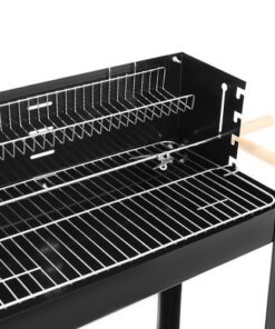 Градински грил с аксесоари G9793 Kaminer. Грилът се предлага с аксесоари, които ще ви позволят да приготвите страхотни ястия: шпатула, вилица и щипка. Изработена от неръждаема стомана. Имат удобни дървени дръжки и благодарение на специални ремъци можете да ги закачите навсякъде. Специална духалка ще ви помогне да запалите традиционна скара. Сега ще отнеме само няколко минути. Градинската скара KAMINER разполага с голяма и просторна тенджера с хромирана решетка, което означава, че не се налага да печете ястия на изплащане, лесно можете да приготвите ястие за по-голяма група хора, напр. по време на парти в градината или на парцела. Купата е изработена от висококачествена дебела ламарина и боядисана с порцеланов емайллак, който е устойчив на високи температури. Оборудван със специална защита срещу вятър, която ефективно може да затрудни приготвянето на храна. Освен това има 4-степенно регулиране на височината. Така ще можете да контролирате по кое време и с каква интензивност ще се пекат ястията. Скарата разполага и с грил за разнообразяване на приготвяните ястия. Освен това структурата на скарата има специален, голям и издръжлив рафт, на който можем да поставим дървени въглища и аксесоари за запалване на огъня, но също така чинии, чаши и храна, която ще приготвяме. Благодарение на него ще имате под ръка всичко необходимо за приготвяне на ястия на скара. Разгледайте още от категорията “Барбекюта на дървени въглища” ТУК!