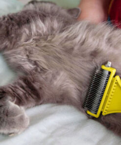Гребен за сплъстена козина за домашни любимци. Козината на вашите домашни любимци е важна част от тяхната визия и здраве. Заплитаната и мъртва козина може да предизвика сърбеж и дискомфорт за вашия куче или котка и да създаде неподдържан вид. Това е гребен за сплъстена козина, който може да подпомогне грижата за козината на вашия домашен любимец. Заплитаната козина може да предизвика сериозни проблеми на вашия домашен любимец. Тя може да стане гнездо за мръсотия и бактерии, което може да доведе до проблеми с кожата и алергии. Освен това, заплитаната козина може да предизвика болка и сърбеж на вашето животно. Разресването на козината на редовни интервали не само поддържа вашия домашен любимец чист и комфортен, но и го предпазва от потенциални здравословни проблеми. Този двустранен гребен за котка и куче е перфектният инструмент за разресване на козината на вашия домашен любимец. Той е специално проектиран, за да разплита и премахва мъртвата козина от кучета и котки със средна и дълга козина. Гребнето е с две страни – едната с по-къси зъбци, а другата с по-дълги, за да се справи с различни видове козина. Този гребен за куче е изключително лесен за използване. Просто започнете разресването от главата на вашето животно и продължете към опашката. Гребнето е с дълги и остри зъбци, които лесно проникват в козината и я разресват без напрежение. Той е сигурен и удобен, за да не наранява кожата на вашето животно. Разресването на козината на вашето животно не само я прави по-комфортна, но и поддържа козината здрава и лъскава. Това предотвратява нейното заплитане и предоставя на вашето животно по-добра защита от вредни външни влияния. Този двустранен гребен е изработен от неръждаема стомана, която го прави изключително издръжлив и подходящ за многократна употреба. В комплекта ще намерите също и транспортна кутия, която улеснява съхранението и преноса на гребнето. Дарете на вашия домашен любимец грижата, която заслужава, и осигурете му лъскава и здрава козина. С двустранния гребен за разресване вашият животен спътник ще изглежда и се чувства по-добре от всякога.