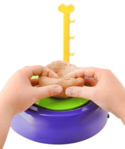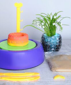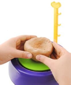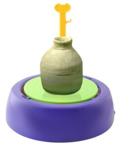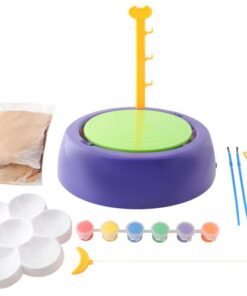 Грънчарско колело с аксесоари – детска играчка. Скулптурен комплект с грънчарско колело, две избираеми скорости на въртене на колела, играчка, която развива умения за ръчно, художествено и творческо мислене. Включено: грънчарско колело, глина 2 бр (общо 800гр) бои от 6 цвята, четки за боядисване 2 бр., инструменти за дърворезба, палитра за смесване на бои, въдица за отделяне на глина от колелото.