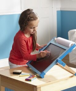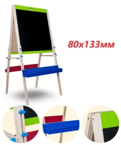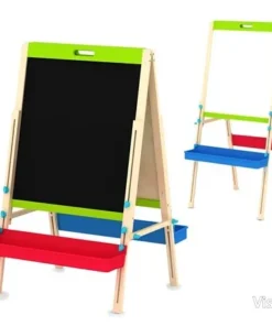 Двустранната дъска за писане – статив съчетава две повърхности, регулируема височина и удобно място за принадлежности, за да поддържа заниманията подредени и лесни за започване. Ако търсите детска дъска за писане, която да служи както за творчество, така и за упражнения, този комплект дава практична основа за ежедневни дейности у дома.
