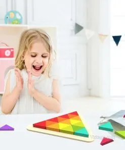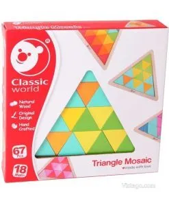 Играта с детската дървена мозайка развива способността за съчетаване на елементи, като детето учи чрез проба и промяна. Редуването на различни цветни форми подкрепя творческото мислене и насърчава желанието за създаване на нови изображения. Когато детето пренарежда, то тренира постоянство и внимание към детайла, а успешната подредба носи удовлетворение от собственото творчество.