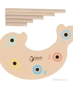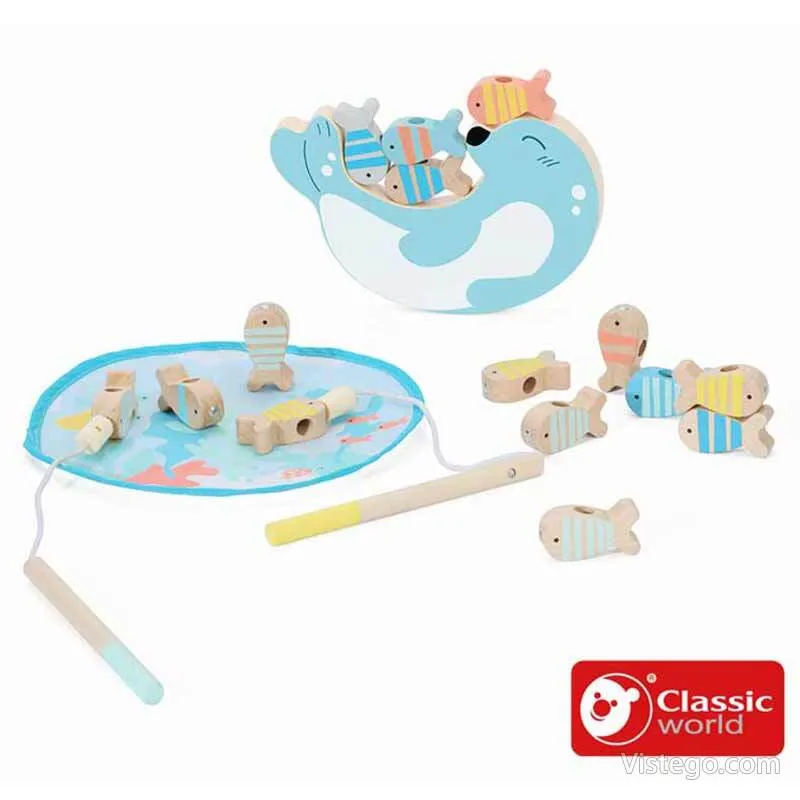 Тази детска играчка риболов от Classic World е замислена като класическа игра с добавена стойност: платформата служи и за подреждане, и за игра с форма на кит. Върху таблото има и числа, което позволява на децата да ги разпознават, докато ловят и подреждат. Играчката е изработена от висококачествен материал и е проектирана в ярки цветове, които лесно привличат детското внимание.
