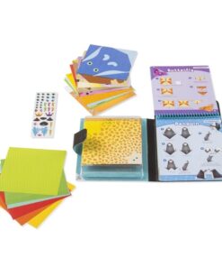 Детска книжка с оригами Животни . Забавлението, сгъваемите занаяти никога не е било по-лесно! Инструкциите стъпка по стъпка и знаците за сгъване върху шарените хартиени листове водят децата през стъпките, за да направят очарователни оригами животни. Комплектът за дейности включва всичко необходимо за направата на 40 различни лица и форми на животни – от котенца и кученца до жирафи, пингвини и дори традиционен жерав. Използвайте 36 хартии с животински щампи и шест хартии с шарки, за да създадете дизайни и след това добавете включените 38 стикера с детайли (като глупави очи или корона за жабата), за да ги накарате да изскочат. Проектите варират от начинаещи през средно напреднали до напреднали, като помагат за развитието и усъвършенстването на фините двигателни умения, координацията между ръцете и очите и сръчността. Всички консумативи за оригами се съхраняват спретнато заедно, което го прави чудесно занимание за креативни деца в движение! Разгледайте още продукти в категорията “Творчески комплекти” – ТУК