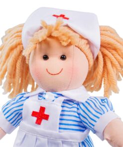 Детска кукла Нанси Медицинската сестра Bigjigs. Запознайте се с медицинска сестра Нанси – тази мека и пухкава парцалена кукла е спокойна в криза и е готова за всякакви спешни случаи. Много надеждна мека кукла, която обича място за драма, Нанси обича да споделя забавлението с приятелите си, когато смяната й свърши. Мекият материал на медицинската сестра Нанси я прави перфектната кукла за малко дете, тъй като тя е малка (само 28 см висока) и нежна към малките ръчички. Парцалената кукла Нанси може лесно да се побере в чанти, детски колички, кошари, легла и коли, така че може да бъде взета навсякъде и по всяко време! Ако вашето дете има страст към модата, гардеробът на Нанси може да бъде сменен с всяко от дрехите за кукли Bigjigs Toys. Nancy Doll отговаря на настоящите европейски стандарти за безопасност. Разгледайте още от категорията “Детски кукли” ТУК!