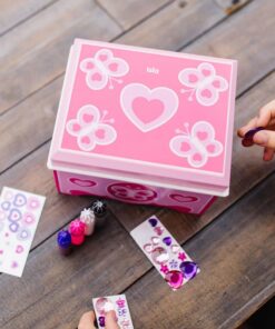 Детска кутия за бижута за декориране Melissa & Doug. Тази дървена кутия за бижута Melissa & Doug е занаятчийски комплект и спомен в едно! Децата могат да добавят свои собствени творчески щрихи и да персонализират тази кутия за бижута Created by Me и да я използват, за да съхраняват своите бижута и специални малки предмети. Здравата дървена кутия е изработена от висококачествено, издръжливо дърво и разполага с огледало вътре в капака, както и кадифен държач за пръстени. Пълният комплект за занаяти включва всичко необходимо на децата, за да украсят красивата розова кутия. Включва 26 искрящи стикера със скъпоценни камъни, 38 блестящи стикера от фолио, три блестящи лепилни пръчици и бяла лепилна пръчка. Декорирането на кутията за бижута не е просто забавление – то помага за насърчаване на фините двигателни умения, координацията око-ръка и творческото изразяване. Дървеният комплект за изработка на кутия за бижута е прекрасна играчка за деца като индивидуален проект или парти дейност и услуга. Това е страхотен подарък за деца на четири и повече години за практическа игра без екран. Разгледайте още от категорията “Детски бижута” ТУК!
