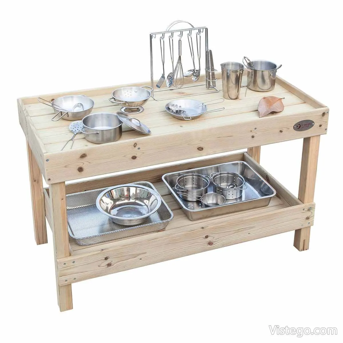 - Дървена готварска маса, подходяща за ролеви игри на открито.