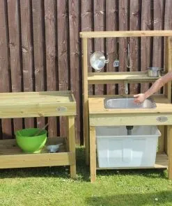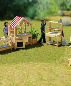 Ако търсите решение за организирана и увлекателна игра на открито, детската кухненска маса предлага удобна „станция“ за въображаемо готвене с много аксесоари и място за съхранение. Детската маса за кухня съчетава подреденост и свобода на играта, така че малките да се забавляват заедно и да развиват уменията си чрез ролеви сценарии.