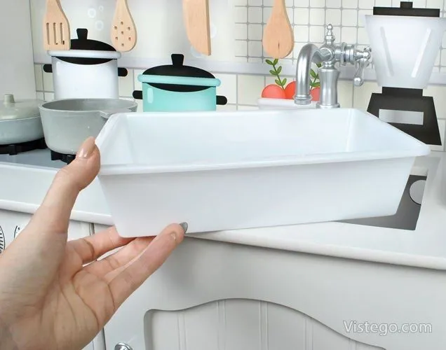 - Елементи за игра: мивка, фурна, котлони и реалистична микровълнова фурна