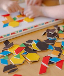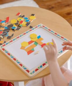 Детска магнитна дъска с магнити Melissa & Doug. Проектирана за часове на игра и идеална за пътуване, тази дървена магнитна дъска включва 120 цветни геометрични магнита. По-малките деца ще се радват да използват формите, за да копират включените 12 геометрични картини, докато по-големите деца ще се радват да създават мозаечни шарки и картини директно върху магнитната дъска. Този комплект се доставя опакован в удобен, закопчаващ се пластмасов калъф със здрави дръжки. Разгледайте още от категорията “Магнитни игра” ТУК