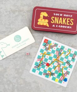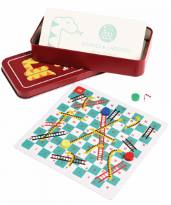Детска мини игра Змии и стълби Отивате на дълго пътуване с децата? Тази игра за пътуване Snakes and Ladders ще прогони скуката. Комплектът включва: 4 магнитни фигури за игра, зарове, дъска за игра (12cm x 12cm). Разгледайте още от категорията “Настолни игри” ТУК