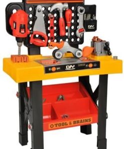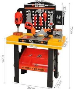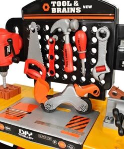 Детска работилница с инструменти – играчки. Перфектната работилница за инструменти учи на креативност, логическо мислене и развива ръчни умения! Благодарение на работилницата вашето дете ще научи за инструментите и принципите, на които те работят. Това е идеална идея за подарък. Работилницата включва много инструменти и аксесоари. Вашето дете ще може да завинтва, сгъва, измерва, пробива и стиска предмети с менгеме. В комплекта има превозно средство за самостоятелно сглобяване по различни начини – можете да сглобите мотоциклет, багер или хеликоптер! Освен това в работилницата е включена работеща едноръчна бормашина, регулируем гаечен ключ, менгеме и много други изненади. В работилницата има и стена с куки, на които можете да закачите инструменти и да се научите да поддържате реда. Отгоре има измервателна лента, благодарение на която детето ще научи числа и ще измерва дължината.