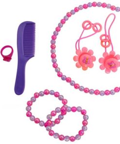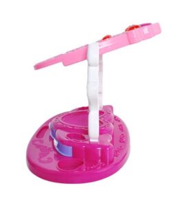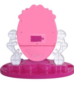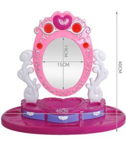 Детска тоалетка за момичета в розов цвят. Продуктът е лек и има компактни размери, така че детето лесно може да занесе тоалетката в друга стая, в градината, детската площадка или при баба и дядо за уикенда. Натискането на сърцето активира звука и проникването на светлина. В основата на тоалетката има 6 вдлъбнатини с различни размери и 3 изтеглящи се чекмеджета с дръжка във формата на сърце с крила – всяко оборудване ще намери правилното си място и ще позволи на момичето да поддържа реда. Задайте свободно ъгъла на огледалото, така че както по-малките, така и по-големите момичета ще могат да създадат перфектен грим или перфектна прическа на тоалетката. Комплект козметика ще позволи на малката принцеса да се подготви за бала. Комплектът включва гребен, 2 ленти за коса, 3 пръстена, мъниста, 2 гривни и имитация на 2 червила и 3 лака. От ранна възраст малките момиченца гледат майките си, по-големите сестри как се гримират и оформят косата си; вместо да вземе козметика, момичето ще може само да имитира и използва тоалетката си. Тоалетката ще помогне на детето да стане самостоятелно, всяка сутрин и преди лягане момичето може да седи на тоалетката и да оформи косата си сама.
