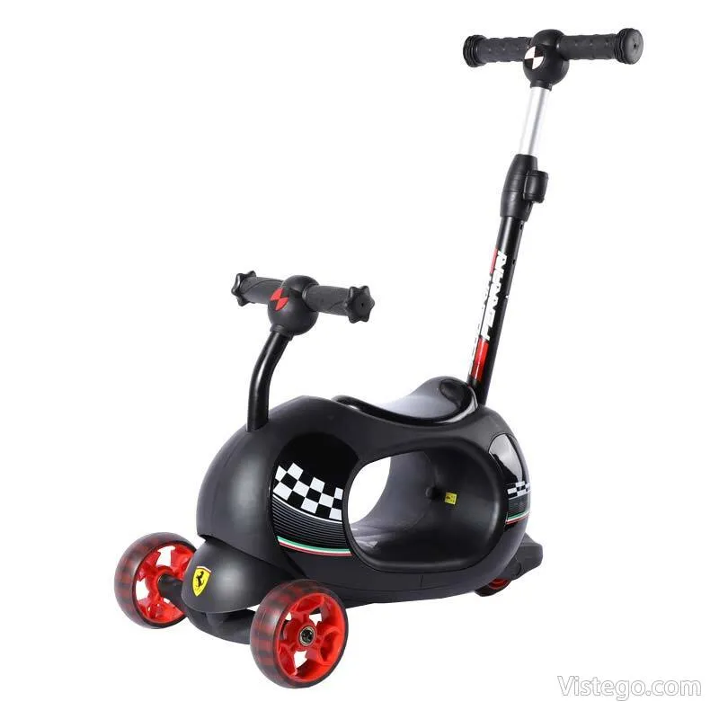 Детска тротинетка с родителски контрол – черна, с режими 4 в 1, светещи колела без батерия и стабилна конструкция за растящи деца.