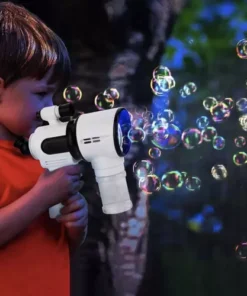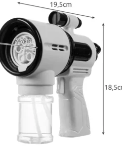 Детски автоматичен пистолет за балончета Kruzzel. Автоматичната машина за балончета Kruzzel е забавна играчка, която може да създаде много мехурчета в минута. Тя разполага с 5 въртящи се отвора, които позволяват на машината да издухва много балончета едновременно. Вграденият вентилатор в базуката създава силен въздушен поток, който преминава през течността за балончета и образува мехурчета. Една от предимствата на автоматичния пистолет за балончета е, че той е автоматичен, което означава, че издухването на мехурчетата става автоматично, без да е необходимо ръчно натискане или усилия. Просто напълнете контейнера с течност за балончета, включете устройството и мехурчетата ще се издухват самостоятелно. Това гарантира лесна употреба и удоволствие за малки и големи. Комплектът за автоматичния пистолет за балончета Kruzzel включва 2 течности за правене на балончета. Когато течностите свършат, просто напълнете контейнера с вода и добавете малко препарат за миене на съдове и можете да започнете забавлението отново. Тази забавна играчка е перфектна за рождени дни, игра в градината, фотосесии или сватби. Освен това, пистолетът за балончета може да се използва и за забавление на домашни любимци. Просто нека детето започне да издухва балончета, а кучето ще се забавлява, ловейки ги. Машината за балончета Kruzzel има вградена подсветка и музика (които могат да се изключат). Когато пистолетът издухва сапунени мехурчета, подсветката им придава син цвят, което добавя визуално впечатление към играта. Всичко това прави автоматичната машина за балончета Kruzzel забавна и интересна играчка, която ще създаде вълна от мехурчета и ще достави радост на цялото семейство. Разгледайте още продукти в категорията “Играчки за навън” – ТУК!