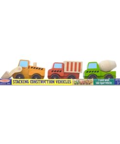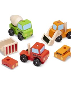 Детски дървен комплект Строителни колички Melissa & Doug. За да сте винаги подготвени за тежък работен ден с тези три строителни превозни средства за нанизване. Комплектът се състои от самосвал (13,5 см), трактор (15,5 см) и циментовоз (11,5 см). Имате за задача да нанижете и сглобите правилно дървените части, преди превозните средства да се отправят към работната площадка. Забавлявайте се безкрайно, тъй като количките могат да бъдат разглобявани и сглобявани многократно, а след това, превозните средства могат да бъдат бутани. Игра, стимулираща фината моторика, координацията и концентрацията. Изработката е от дърво, а боите са нетоксични. Комплектът съдържа: 3 превозни средства и части за нанизване. Разгледайте още от категорията “Дървени колички и камиони” ТУК