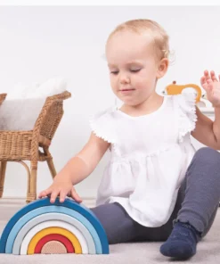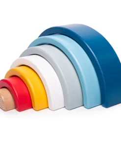 Детски дървен конструктор Дъга за подреждане Bigjigs. Подреждайте, изграждайте и играйте с нашата универсална FSC сертифицирана играчка за подреждане Rainbow. Без насоки или правила как да играете с тази играчка за подреждане, тя е идеална за насърчаване на игра с отворен край. С тези цветни подреждащи арки малките ръчички могат да сглобяват различни форми и предмети, като същевременно научават всичко за различни размери, текстури и цветове. Помага за развитието на креативността и сръчността на децата. Изработена от масивна дървесина, която е етично получена от FSC сертифицирани гори. Покрити с нетоксични бои, подходящи за деца. След като времето за игра приключи, тази играчка за подреждане става забавна украса за спалнята или детската стая на вашето мъниче. Съответства на настоящите ASTM F963 и европейските стандарти за безопасност. Разгледайте още от категорията “Дървени пъзели” ТУК!