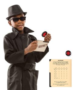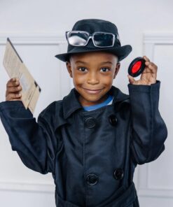 Детски карнавален костюм за шпионин . Супер детективите ще намерят всичко необходимо, за да бъдат хитри шпиони на строго секретна задача с този комплект за ролева игра под прикритие! Костюмът включва черно палто и федора шапка, изработени от висококачествена материя и здрава конструкция, с размери, подходящи за възраст от пет до осем години. Слънчевите очила за обратно виждане добавят страхотна нотка, като същевременно позволяват на детективите да видят какво се случва зад тях! Бъдете заети с карта със секретно кодирано съобщение, декодерна леща и ръководство за шпиониране. Разгледайте още от категорията “Детски карнавални костюми” ТУК!
