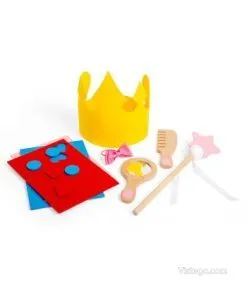 В комплекта ще откриете елементи, които допълват идеята за принцесата и насърчават разнообразна игра. Вместо детето да използва случайни предмети, тук аксесоарите са подбрани тематично и логично.