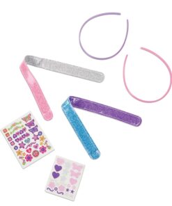 Детски комплект Декорирай диадеми Melissa & Doug. За момичета, които изследват своите стилни страни или просто търсят най-сладкия начин в света да приберат косата си, този всеобхватен комплект за изработка е идеалният начин да персонализирате две сладки ленти за глава! Включени са над 50 блестящи гел стикера и искрящи блестящи стикери, за да направят всеки един уникален. Децата просто избират лента за глава, добавят стикери и поставят стикер върху една от включените пластмасови ленти за глава. Резултатът е блестящо модно изявление, което те ще носят с гордост! Разгледайте още продукти в категорията “Творчески комплекти” – ТУК!