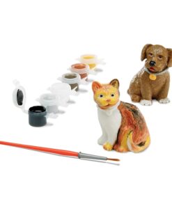 Детски комплект за декорация Домашни любимци Melissa & Doug. Единствената трудност с този комплект за занаяти ще бъде да решите коя от двете готови за декориране фигурки на домашни любимци от твърда смола да нарисувате първа! Включени са 6 саксии с цветна, нетоксична боя и лесна за почистване четка. Разгледайте още от категорията “Творчески комплекти” ТУК