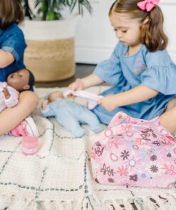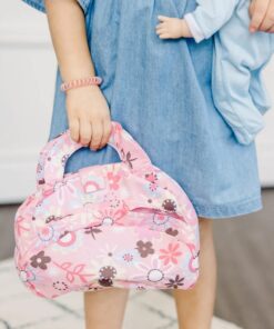 Детски комплект за кукли Смяна на пелени в чантичка Melissa & Doug. Децата могат да се грижат за своята кукла като за истинско бебе с този стилен комплект за смяна на пелени. Чантата за пелени се отличава с висококачествена материя със забавен флорален принт, меки, подплатени дръжки и лесни за отваряне отделения, за да поддържате запасите на бебето организирани и готови за употреба. Комплектът включва самозалепваща платнена пелена, която може да се регулира, за да пасне, контейнер, пълен с три кърпички, и бурканче с мехлем против обрив с капак, така че малките да могат да отглеждат и да се грижат за своята кукла бебе. Висококачествените материали и конструкция гарантират издръжливост, така че вашите деца да могат да играят с комплекта отново и отново. Това е прекрасен аксесоар за игра, който насърчава езиковите и фините двигателни умения, насърчава съпричастността и самочувствието и може да осигури часове игра. Комплектът чанта за пелени Mine to Love на Melissa & Doug е чудесен подарък за деца в предучилищна възраст на три и повече години за практическа игра без екран. Разгледайте още от категорията “Детски аксесоари” ТУК!