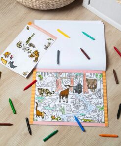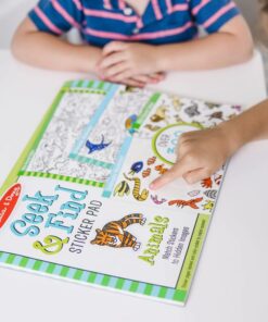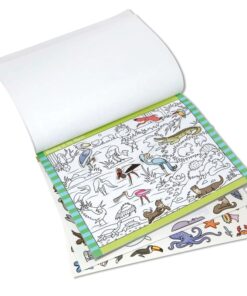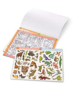 Детски комплект за оцветяване със стикери Животни Melissa & Doug. Тази забавна подложка е игра за търсене и намиране, подложка за оцветяване и подложка за стикери, събрани в едно! Свържете повече от 400 пълноцветни стикера с предмети на 14 страници с тематика за животни, след което оцветете детайлните сцени с моливи, маркери или пастели, за да създадете уникални по рода си картини. Страниците със стикери са цветно кодирани и етикетирани, за да съответстват на сцени. Сцените, богати на детайли, включват пустиня, гора, океан, езеро, долна част на тропическите гори, върховете на тропическите гори, динозаври, басейн с приливи и отливи, Арктика, блато, ферма, плевня, коралов риф и сафари. Перфорираните ръбове улесняват премахването на страниците със стикери, за да съответстват на сцените. Разгледайте още продукти в категорията “Творчески комплекти” – ТУК