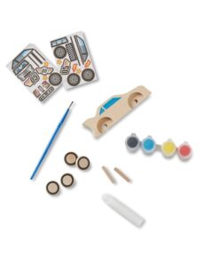 Детски комплект Оцвети дървена количка . Децата могат да задоволят нуждата си от скорост с този страхотен комплект за занаяти! Включва пълни консумативи за проектиране и персонализиране на състезателна кола, включително дървени колела и оси, бои, четка, лепило, стикери и лесни указания. Поставете младежите на „бързата писта“ към забавленията за изграждане и състезания! Разгледайте още от категорията “Дървени колички и камиони” ТУК