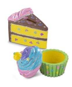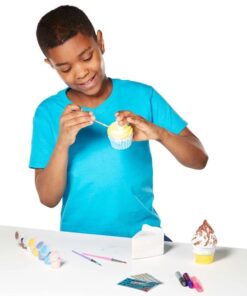 Детски комплект Оцвети сладкиши . С този увлекателен комплект децата могат да добавят свои собствени уникални лични щрихи, за да украсят 3 изключително сладки фигури! Въртящата се фуния за сладолед и кутиите за кексчета с черешка са неустоими места за съхранение на съкровища, а касичката за многослойни торти ви позволява да запазите промяната в стила си. Включва също 75 стикера от фолио, 6 саксии с боя, 3 четки за рисуване и 3 блестящи лепила, за да направите тези занаяти, вдъхновени от вас и вашето въображение! Разгледайте още продукти в категорията “Творчески комплекти” – ТУК