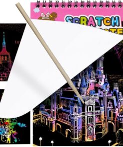 Детски комплект скреч карти с дървена писалка – скицник. Този скреч комплект ще бъде идеален за дълги пътувания с кола или друго транспортно средство и докато чакате, например, час при лекар. Ще поеме идеално вниманието на всяко малко дете и ще накара времето да тече много по-бързо! Комплект от скреч карти е много креативна играчка, практически без ограничения – можете да „рисувате“ всякакви рисунки. Това е не само атрактивен начин за прекарване на време, но също така оказва влияние върху интелектуалното развитие на детето и координацията между ръцете и очите. Създаването на рисунки развива креативността и стимулира пространственото въображение. Малкото дете тренира концентрация и ръчна сръчност. Специална дървена писалка е включена в комплекта карти , безопасна за всяко дете. Има заоблени форми, благодарение на които малкото дете не може да се среже на хартията. Вашето дете може да вземе този малък бележник навсякъде, в детска градина или на пътуване. Ще се побере във всяка раница и чанта.