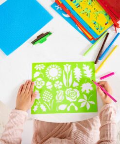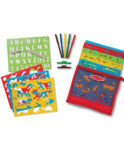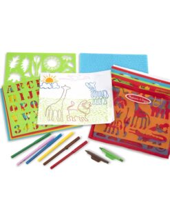 Детски комплект шаблони за рисуване Melissa & Doug. Добавете вашите уникални лични щрихи, за да направите оригинални дизайни на шаблони, вдъхновени от вас и вашето въображение! Този комплект включва 12 супер издръжливи тематични листа с шаблони с повече от 170 дизайна (сафари животни, динозаври, ферми, превозни средства, букви, форми и други!) и двустранна търкаща се плоча с осем различни текстури. Дъга от шест цветни маркера, два пастеля в лесни за хващане държачи и 10 листа хартия предоставят много начини за създаване и персонализиране. Всички консумативи се съхраняват спретнато в удобна торбичка с цип, така че е лесно да носите творчество в движение! Разгледайте още продукти в категорията “Творчески комплекти” – ТУК!