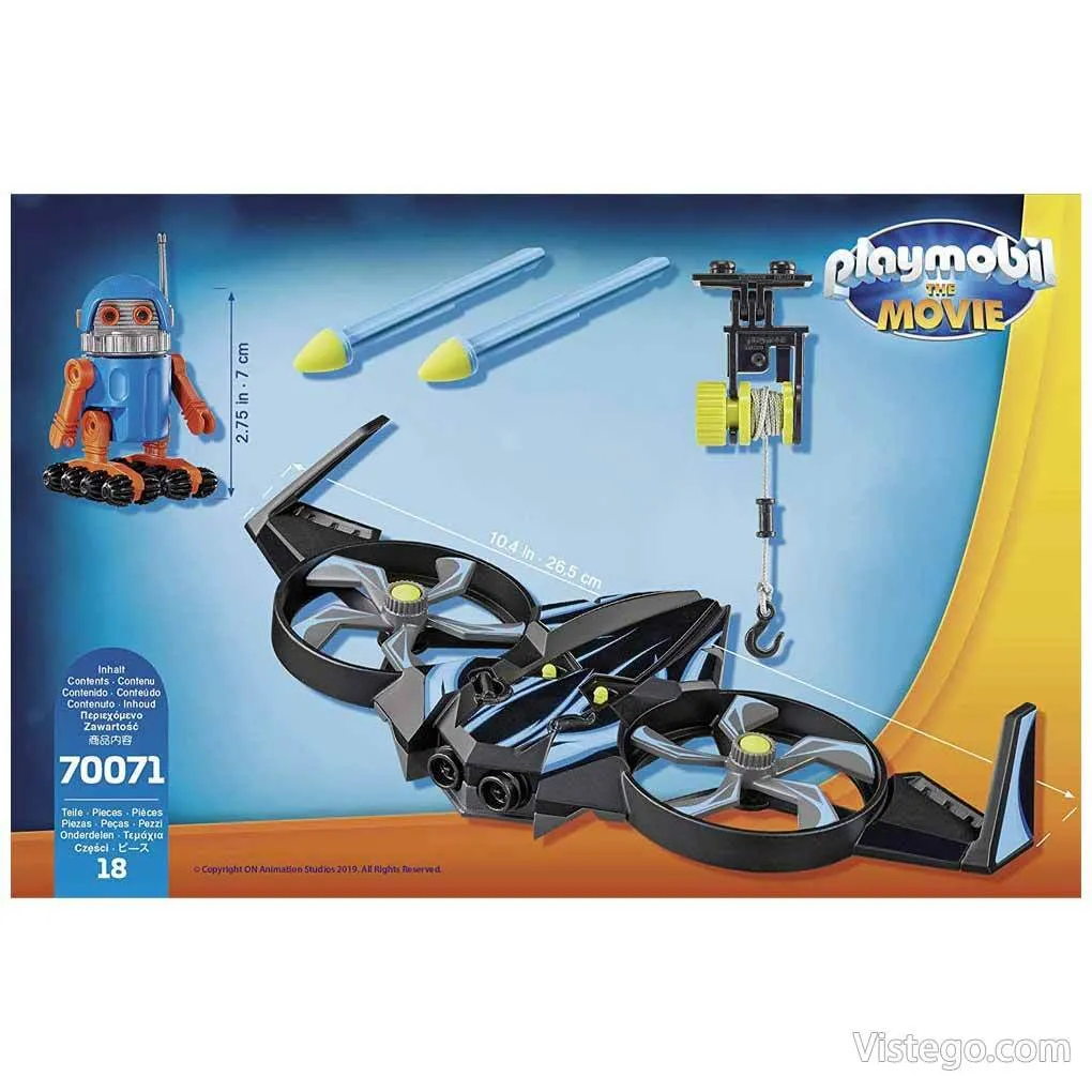 Детски конструктор Playmobil ви кани да пренесете играта в свят на приключения, където всяка сцена се измисля наново. В този комплект отличителният герой Роботитрон с дрон лесно се превръща в център на сюжетите у дома и помага на детето да развива въображение чрез разказване на истории и разиграване на роли.