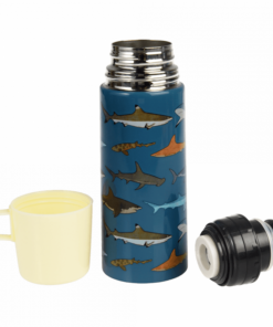 Детски метален термос с чаша Акули Rex London. Този термос с чаша е изработен от неръждаема стомана с комбинирана пластмасова чаша и капак ще поддържа напитките ви топли, докато пътувате, пикник или пътувате до работното място. Този термос с нашия красив принт на Акули е стилен начин да се насладите на любимите си топли напитки без чаши за еднократна употреба. Разгледайте още от категорията “Детски аксесоари” ТУК