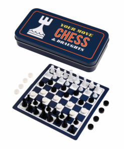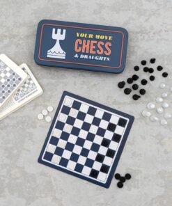 Детски мини шах и табла за път Rex London. Полетът закъсня? Една добра игра на шах или шашки е чудесен начин да прекарате времето си. Тази кутия за пътуване включва: Магнитни фигури за шах, Магнитни пулове, Зарове, Дъска за игра (12cm x 12cm). Разгледайте още от категорията “Настолни игри” ТУК