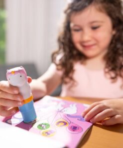 Детски печат Еднорог Sticker WoW Melissa & Doug. Melissa & Doug Sticker WOW!® представя напълно нов начин за игра със стикери! Разкрийте очарователния колекционерски Cupcake the Unicorn, който ще ви води през 24 страници пълни със забавления и фентъзи дейности за броене, съпоставяне и търсене и намиране. Многократно зареждащият се стикери идва предварително зареден с куп стикери от 300 разнообразни бройки – със 100 уникални дизайна във всеки пакет, като всеки стикер е изненада! Тематичните опаковки за презареждане се продават отделно и са съвместими с всеки печат на стикери Sticker WOW!®. Стикерите не са за многократна употреба, но се отстраняват лесно, ако е необходимо. Изпълнете страниците с дейности и ги включете в творчески арт проекти като отметки, плакати, картички и други. Лесно се отделящите стикери и удобният формат в движение с вградено място за съхранение на печати за стикери правят Sticker WOW!® (заявен патент) страхотно занимание за пътуване без бъркотия. Sticker WOW!® насърчава фините двигателни умения, творческата игра и е удовлетворяващо, забавно забавление! Разгледайте още продукти в категорията “Творчески комплекти” – ТУК!