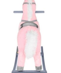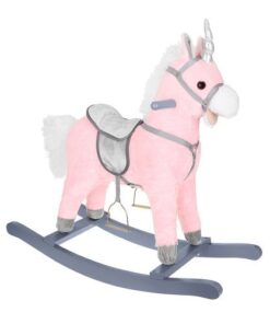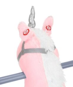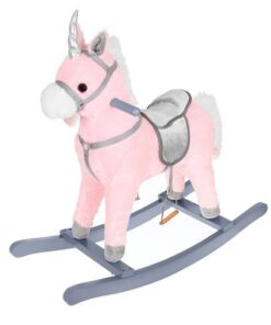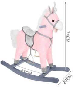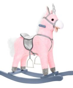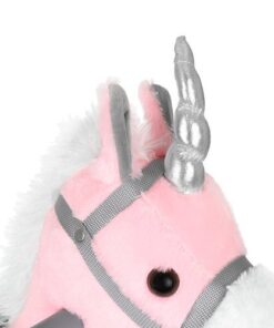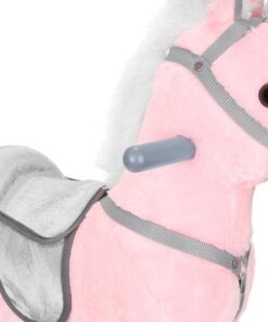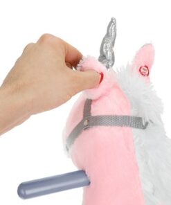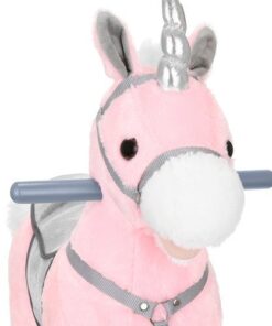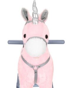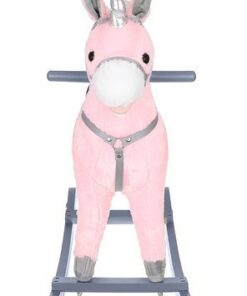 Детски плюшен еднорог-люлка в розово. Кончето-еднорог е нов модел, който се откроява от другите обикновени понита. Ще бъде голяма радост особено за децата, които обичат да гледат анимационни филми с еднорози. Язденето на кон е изключително забавно, но също така тренира способността за поддържане на равновесие. Щеките са проектирани така, че детето да не може да се люлее опасно. Играчката е с вграден високоговорител, от който излиза приятна за ухото, весела мелодия. Озвучителната система се захранва от батерии, които са разположени в корема на кончето. Конят също издава цвилине и галоп. Активират се с бутони, разположени в ушите. Задната част е изработена от мек и приятен на допир плюш, дръжките и пръчките са от лакирано дърво. Гривата и опашката на еднорога са ултра меки и приятни на допир. Когато включите музиката в еднорога, той ще започне да движи устата и опашката си. Това определено прави забавлението по-привлекателно.