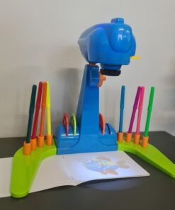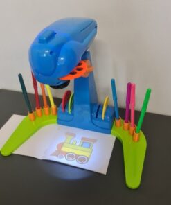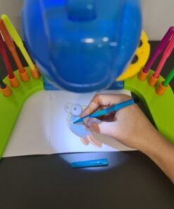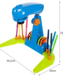 Детски проектор за рисуване Kruzzel 20445. Проекторът с аксесоари ще бъде чудесен подарък за всяко дете, което обича да рисува. Има възможност за регулиране на височината от 25 до 34 см. Регулирате височината, за да създадете по-голям или по-малък чертеж. След включване на специална подсветка, върху лист хартия от диапозитив, поставен в проектора, се показва избран модел. За да преминете към следващата снимка, просто преместете слайда една стъпка надясно или наляво. Няма нищо по-лесно! Продуктът улеснява научаването на рисуване, чертане на линии и създаване на нови форми, всичко това съчетано с добро забавление. В комплекта са включени 4 диска с 32 картинки на различни теми: плодове, превозни средства, сафари животни, морски животни. Благодарение на тях малкото дете ще започне да се учи да рисува, като рисува линии по определен шаблон. Към комплекта с проектора и диапозитивите добавяме 12 цветни маркера и книжка за рисунки. Така че имате всичко необходимо, за да започнете забавлението. Удобна стойка за химикалки и диапозитиви ще ви помогне да поддържате ред и винаги да имате необходимите инструменти под ръка. Разгледайте още от категорията “Творчески комплекти” ТУК!